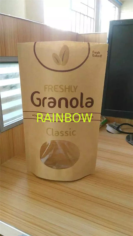 La aduana imprimió la bolsa de papel de Kraft, se levanta la bolsa de papel de Kraft, bolso del bocado que empaquetaba con la ventana |
